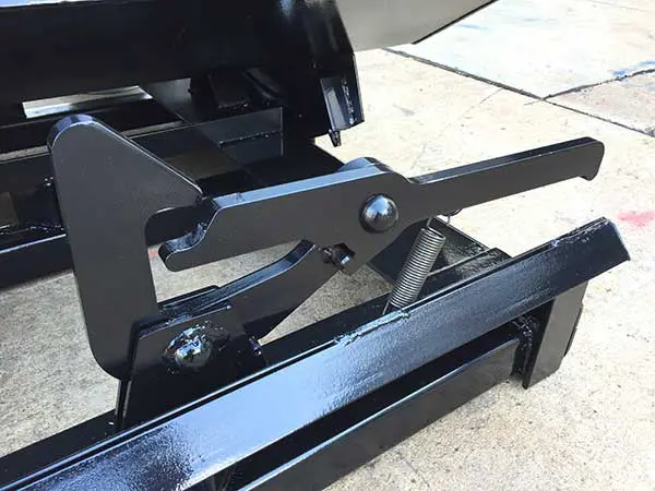 Roura’s Auto-Latch handle option provides a safe and efficient method of dumping bulk material content from our hoppers. Its auto secure handle feature allows the locking position of the handle to be fully engaged to the hopper until the handle is tripped to dump the content. Our exclusive internal stop pin on the Roura Auto-Latch handle is designed to minimize the number of parts resulting in the reduction of possible pinch point areas of the dumping operation.