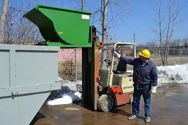 The Roura Original Self Dumping Hopper can now be dumped without leaving your forklift. Roura’s Mechanical Hopper Release System is designed for the operator to effectively transport and dump materials while remaining seated on the forklift.