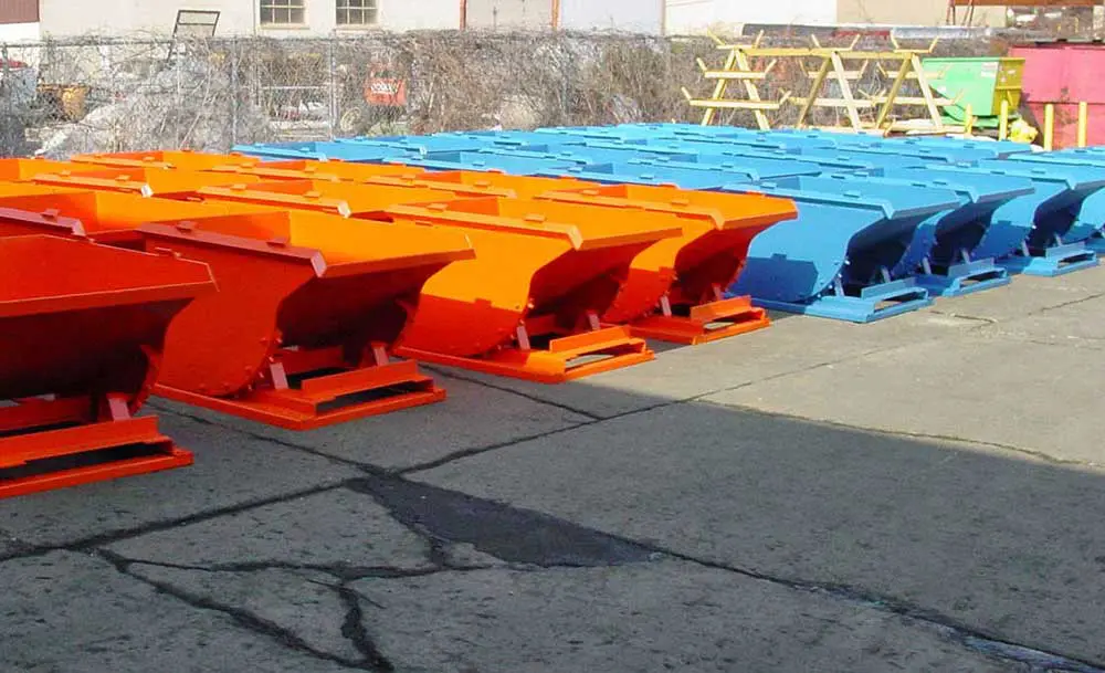 Roura conceived and developed self dumping hoppers in the late 1920’s. Our durable dump hoppers feature a 12 gauge and 10 gauge steel body, hold up to 4,000 lbs. and have capacities up to 5 cubic yards. Our Rugged Hopper, a 3/16″ plate steel dump hopper, holds up to 8,000 lbs., and the Ultimate strength grade 1/4″ plate steel dump hoppers come in various sizes from 1/3 cubic yard to 5 cubic yard capacities. Our largest hoppers, the Behemoth hoppers, have carrying capacities up to 10,000 lbs. and hold up to 10 cubic yards!