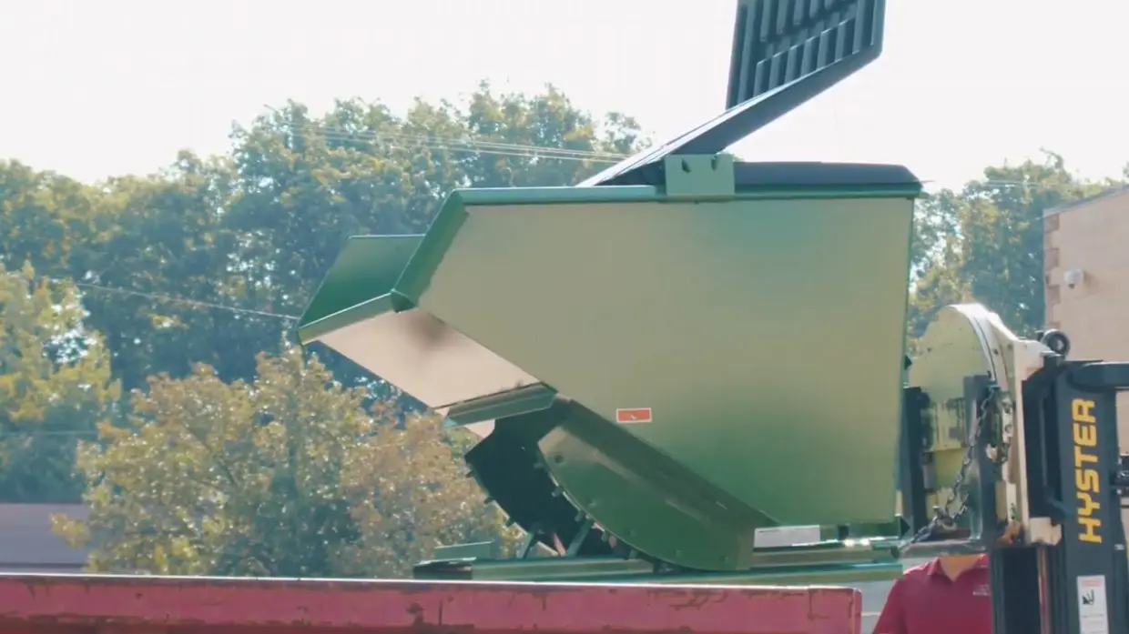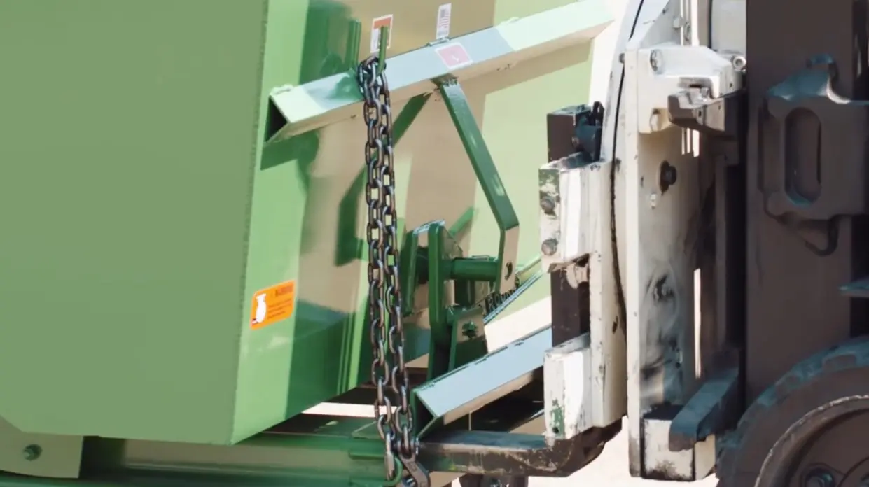 Designed for easy forklift operation without needing specialized attachments or equipment. Watch our video to learn how easy safe self-dumping forklift operation is with a Roura hopper.